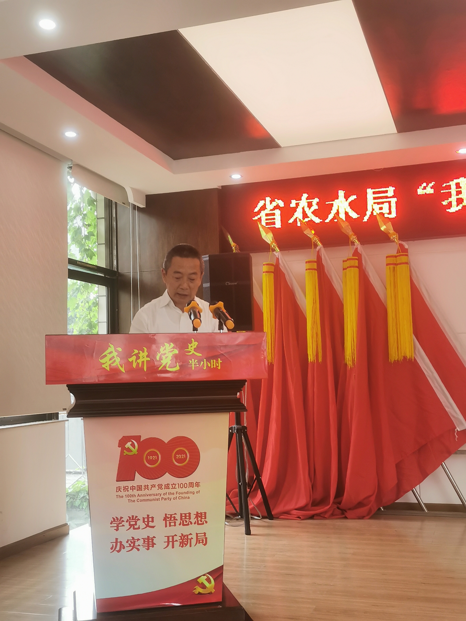 6月28日下午,四川省农田水利局举行庆祝中国共产党成立100周年表彰大会暨“我讲党史半小时”专题党课活动,全体党员干部职工参加。活动在庄严的国歌声中拉开序幕,局党委书记董军带领全体党员面向党旗重温了入党誓词,对优秀共产党员、优秀党务工作者和先进基层党组织进行了表彰。